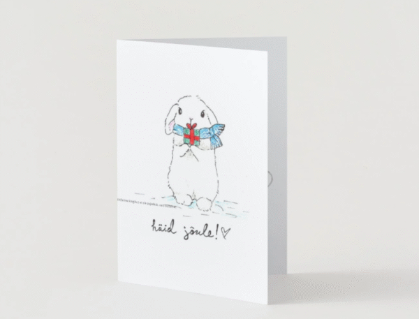 Selle südamliku kaardi autor on Sally Stuudio kunstikooli õpilane Mia-Emilia – noor, kes on olnud vabatahtlikuna abiks SOS Lastekülas ja soovib oma loominguga tuua lastele valgust ja lootust.Kaardi keskmes on armas jänku, kes hoiab käppade vahel väikest kingitust – sümbolit hoolivusest, soojusest ja siirast soovist teha head. „Väike kingitus, suur süda” tuletab meelde, et tõelised kingitused ei tule poekotist, vaid südamest – heast sõnast, kallistusest või hoolivast pilgust.